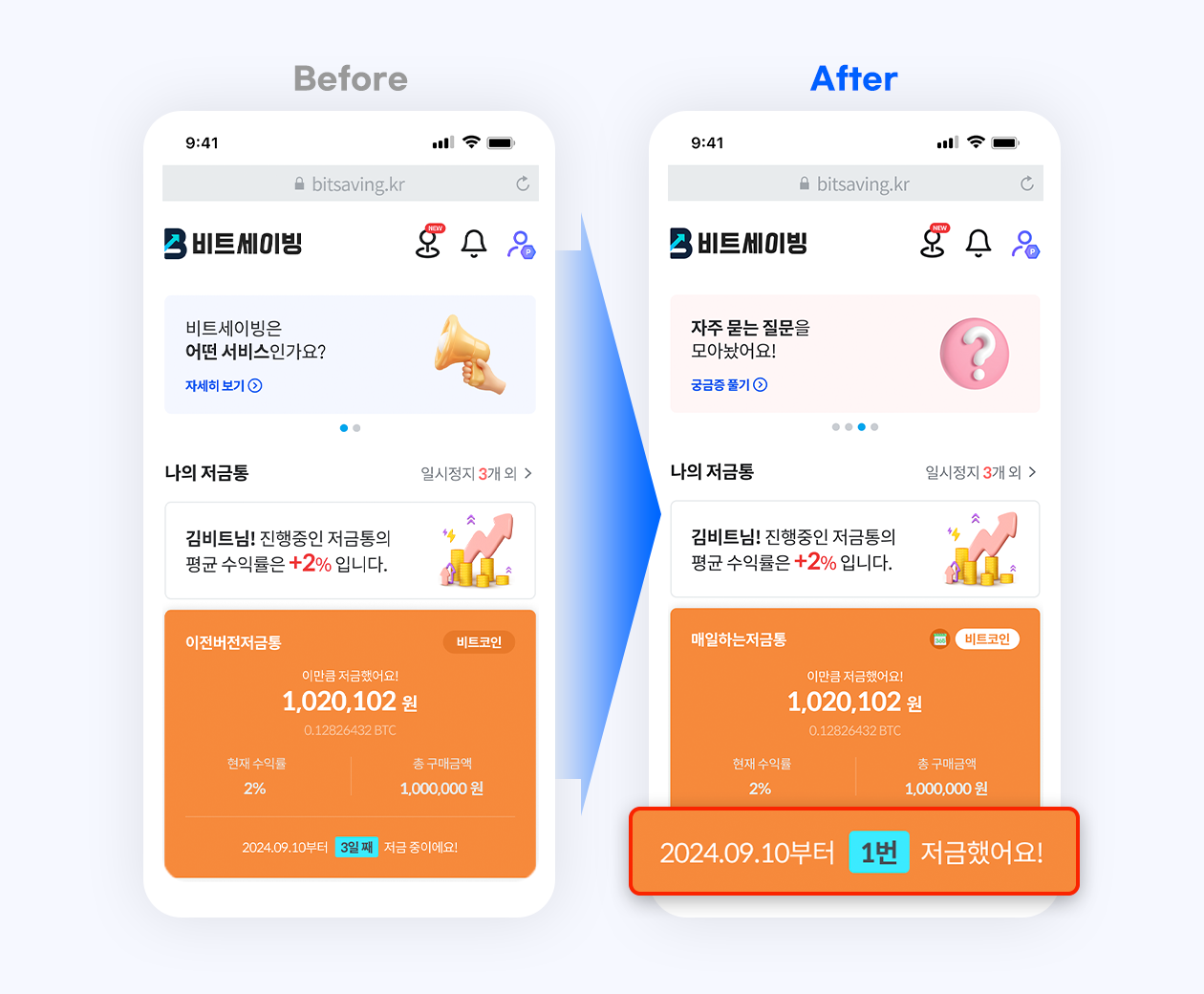 비트세이빙의 작은 부분이라도 불편함이 느껴진다면 언제든 고객센터로 메시지를 남겨주세요!