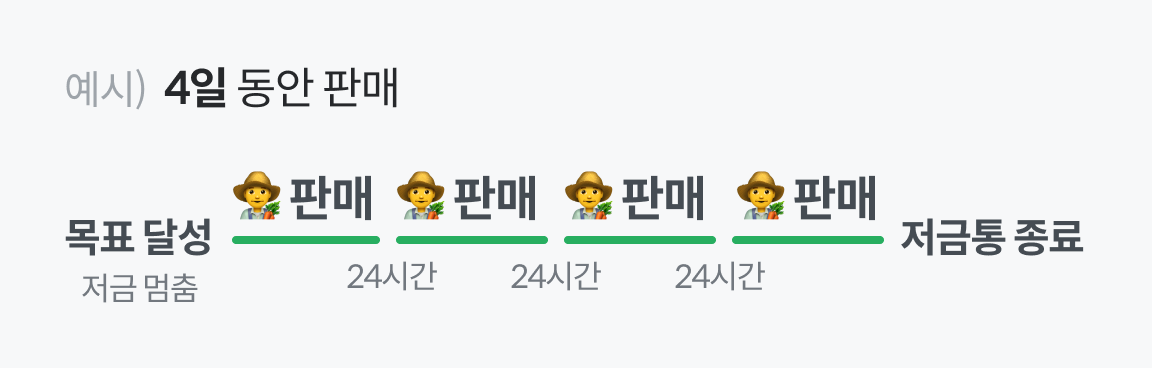 간단하게 저금통을 만들 때 목표를 설정하고, 이를 달성하면 판매합니다.