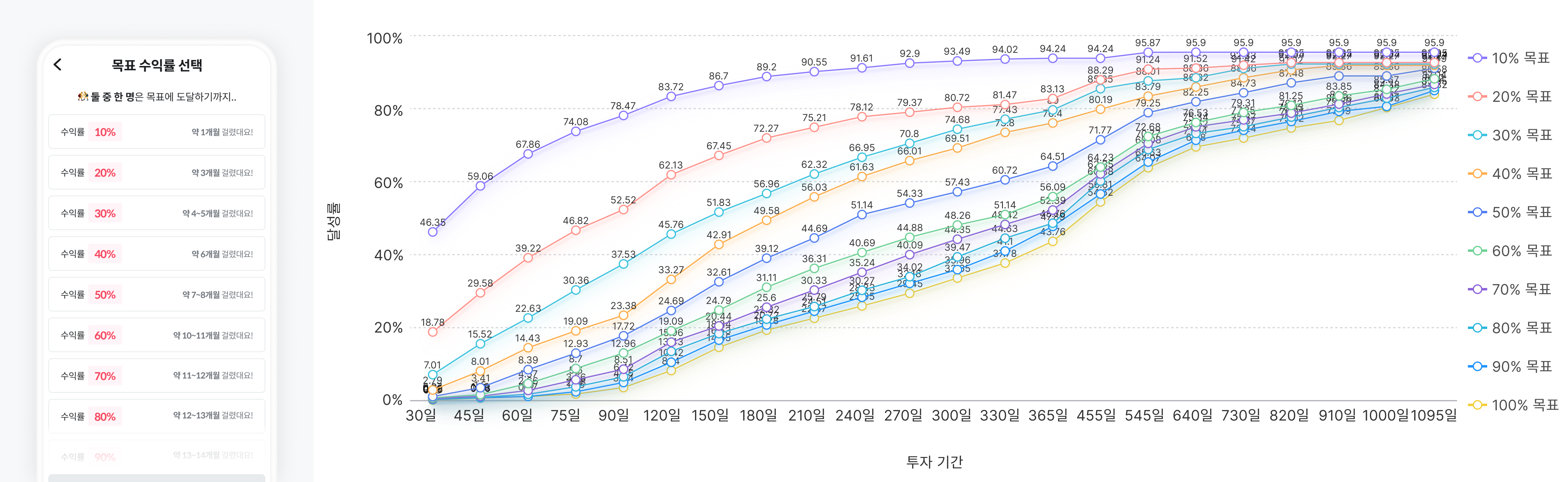 목표는 수익률을 기준으로 10%~100%까지 총 10가지 선택지를 제공하고 있습니다.
