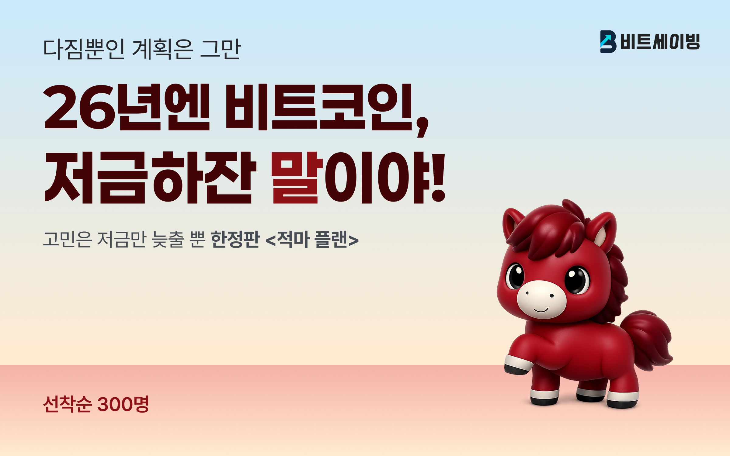 올해는 다짐으로 그치지 않고, 꼭 시작하실 수 있도록 붉은 말의 기운을 담아 <적마 플랜>을 준비했습니다.