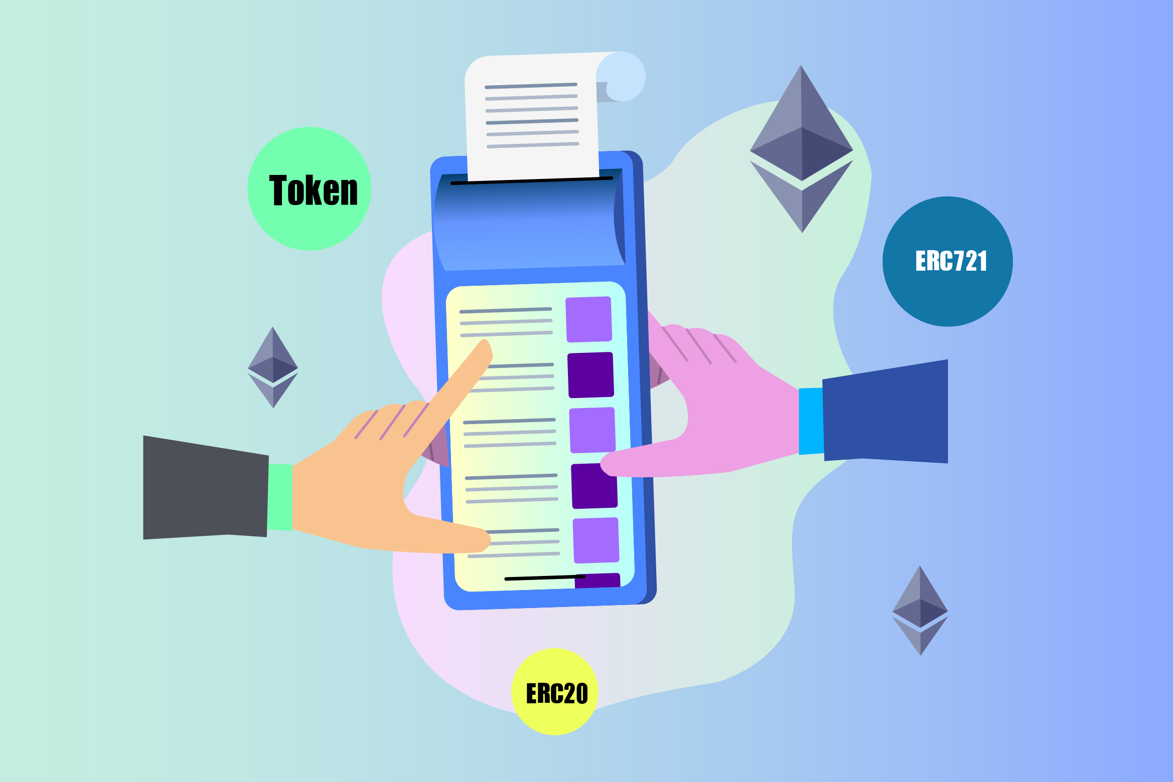 이더리움에서의 토큰은 이더리움 자체 암호화폐 이더(Ether)와 달리 스마트 계약을 통해 발행됩니다.