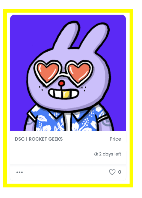 위 NFT는 경매방식으로 판매 등록된 NFT입니다. 'Place bid' 버튼을 클릭하여 입찰(Bid)에 참여할 수 있으며 경매 종료 시점 전에 Reserve price(판매자가 설정한 거래 성사 최소 가격 기준) 보다 높게 입찰(Bid)한 구매자에게 낙찰됩니다.