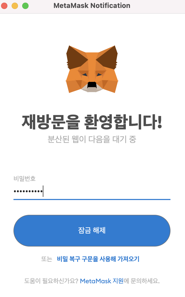 지갑 로그인을 선택하면 해당하는 지갑 로그인 창이 팝업됩니다.