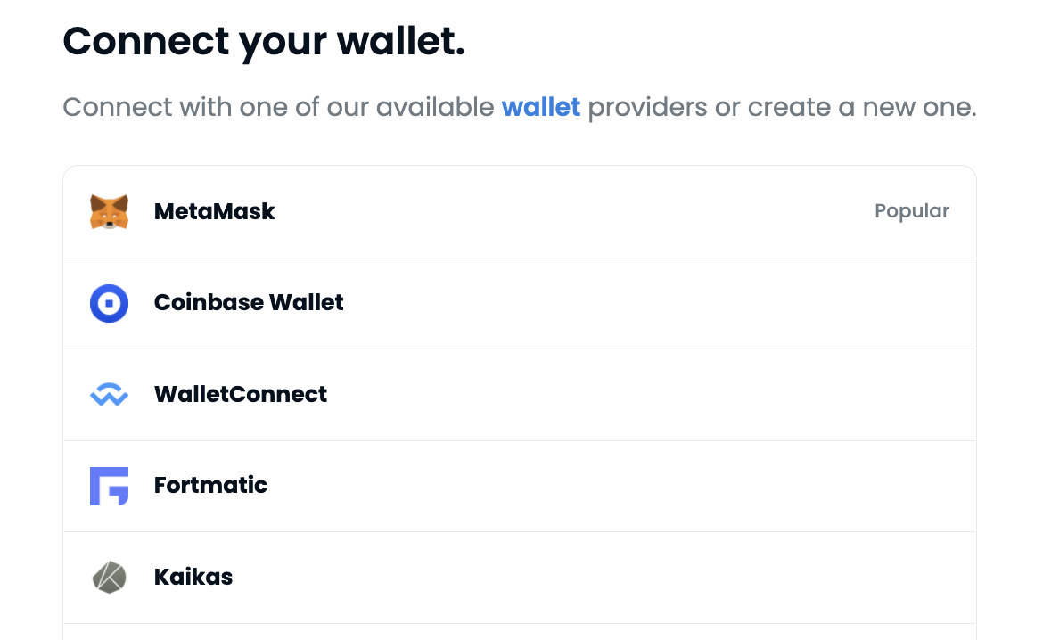 메타마스크, 코인베이스 월렛, 카이카스 지갑 등을 통해 지갑을 연동하여 로그인 할 수 있습니다.