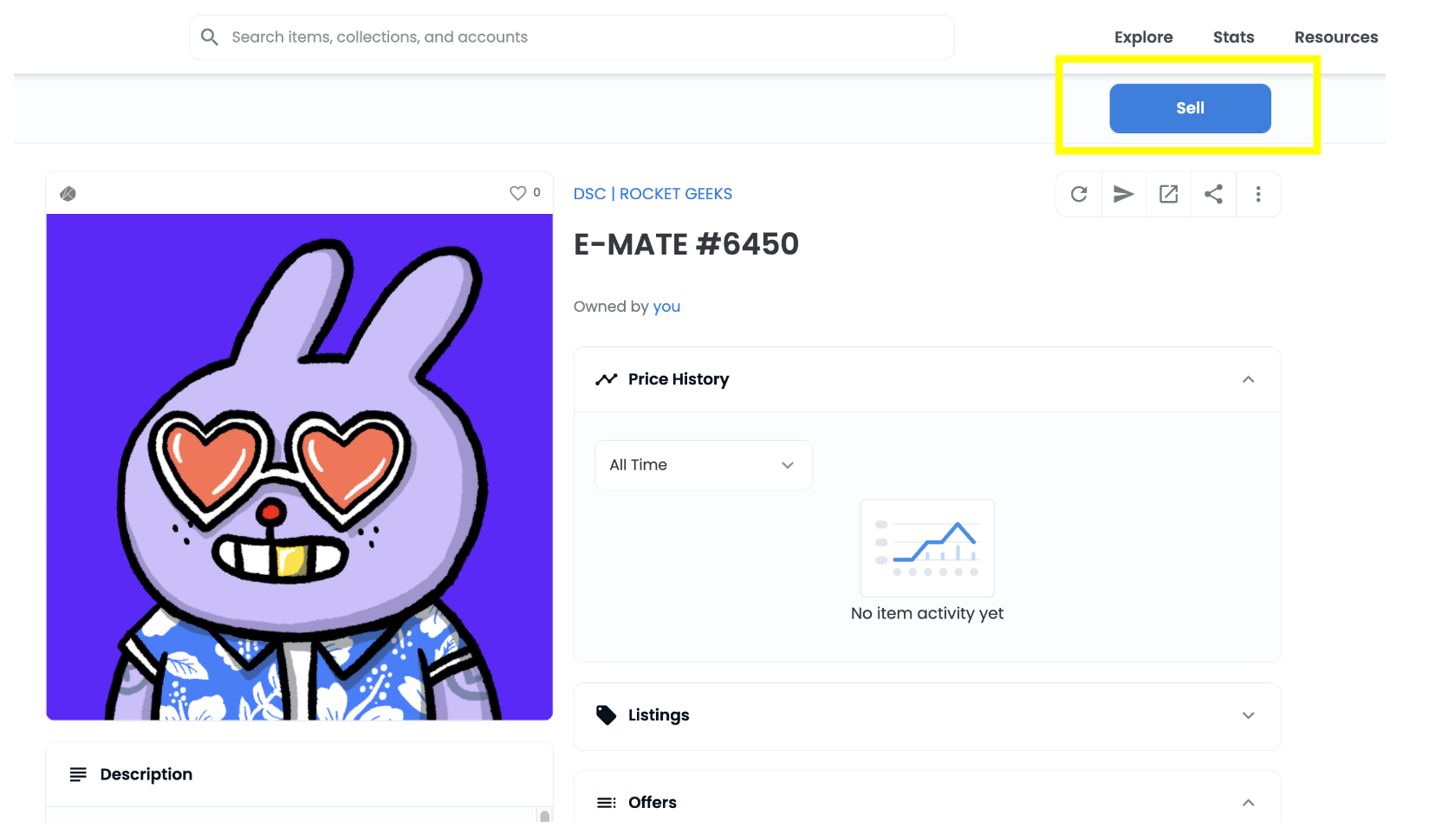 이곳에서 상단 우측에 위치한 Sell 버튼을 클릭합니다.