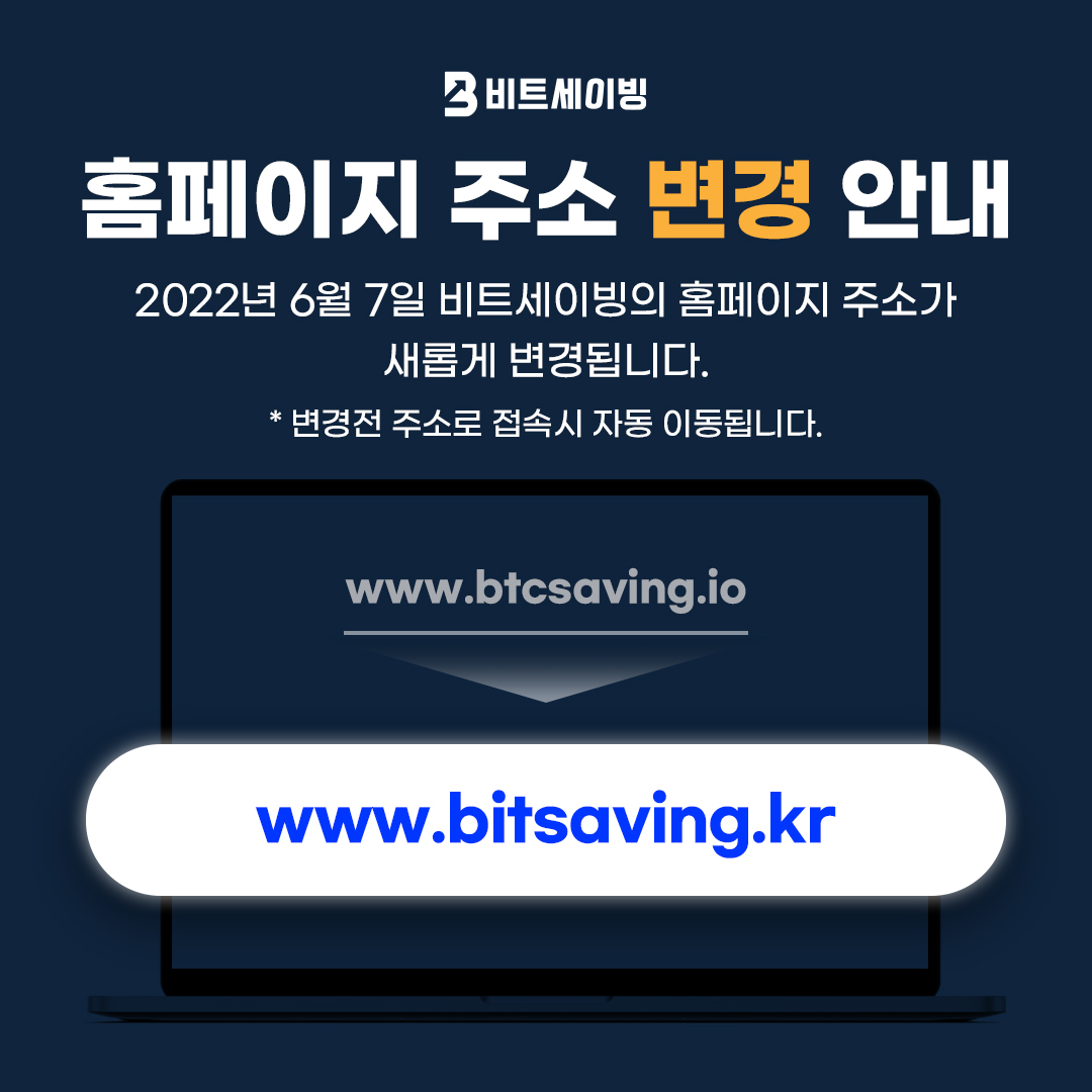 * 기존 btcsaving.io로 접속시 변경된 주소로 자동 이동됩니다.
