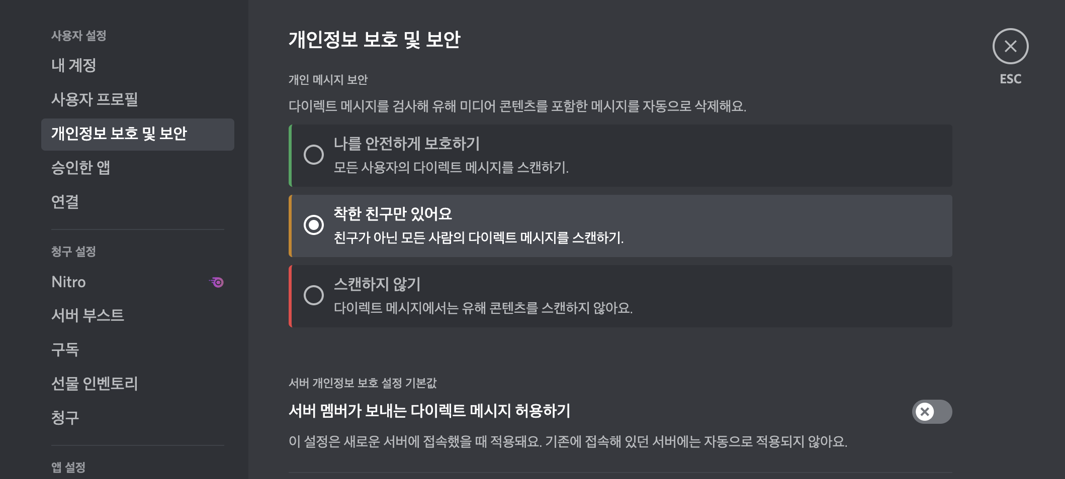 위와 같이 아예 디스코드 서버에서 보내는 DM을 모두 차단하는 것도 하나의 방법이 될 수 있습니다.