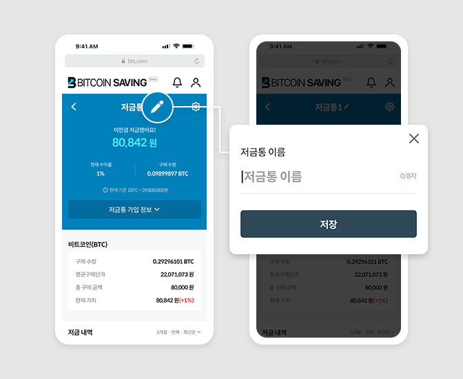 저금통 이름을 바꾸고 싶을 때, 이름 옆의 아이콘을 클릭해보세요.