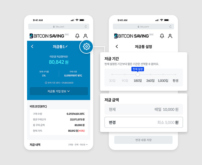 저금통 기간과 금액을 변경하고 싶을 때, 설정화면에서 수정할 수 있어요.