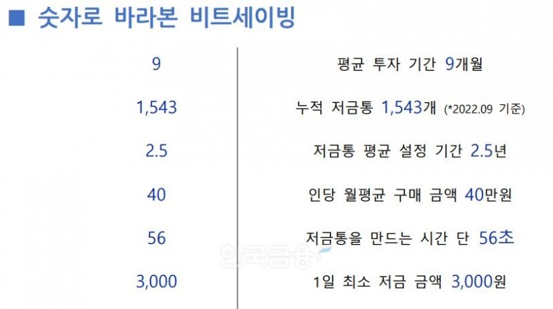 대표 서비스 ‘비트세이빙’이 주요했다. 비트세이빙은 최소 3000원 이상 일정 금액으로 매일 디지털 자산을 구매해 적립하는 서비스다. 일종의 은행 적금과 같다.