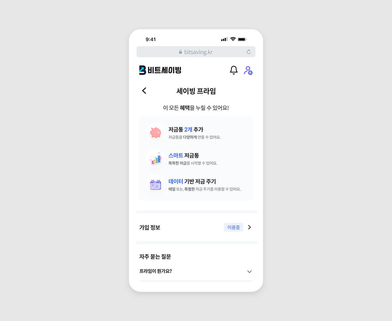 * 무료 계정은 일반 저금통 1개(주 1회 주기만 제공)만 이용할 수 있습니다.